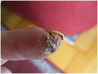 Травма произошла в феврале 2009 года. Работая на фуганке мужчина отрубил часть фаланги, врачи отрубленный кусочек пришили. Основная терапия по восстановлению проходила с использованием прибора СЕМ ТЕСН.